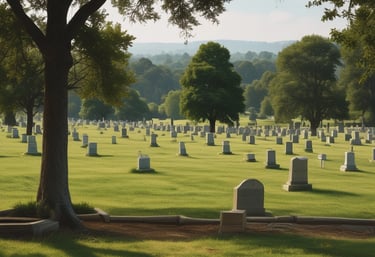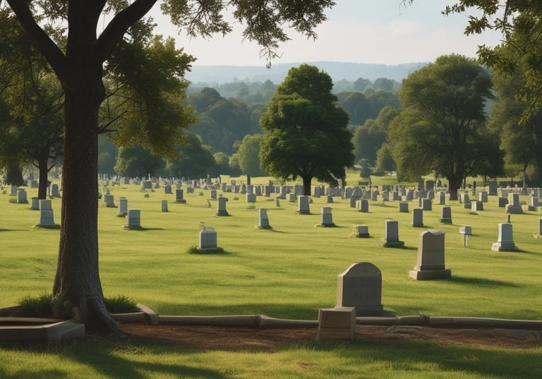 Nestled on a gentle slope with mature trees, our cemetery offers a peaceful resting place.